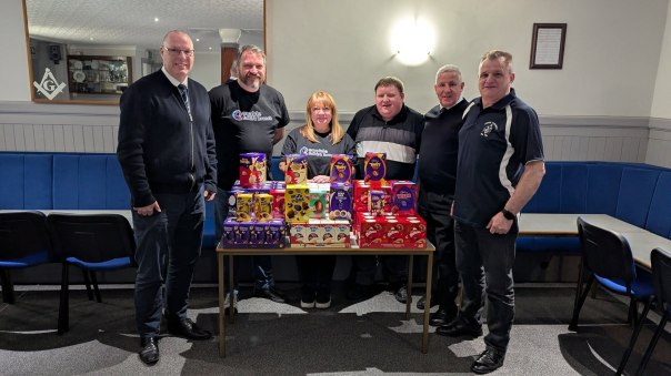 On behalf of Neil, Maureen and Aaron they would just like to say a massive thanks to the brethren and visitors of lodge Polmont for the donation of 143 Easter eggs this will go a long way to ensuring that Enabled Scotland Falkirk branch can give the young adults a great Easter party.